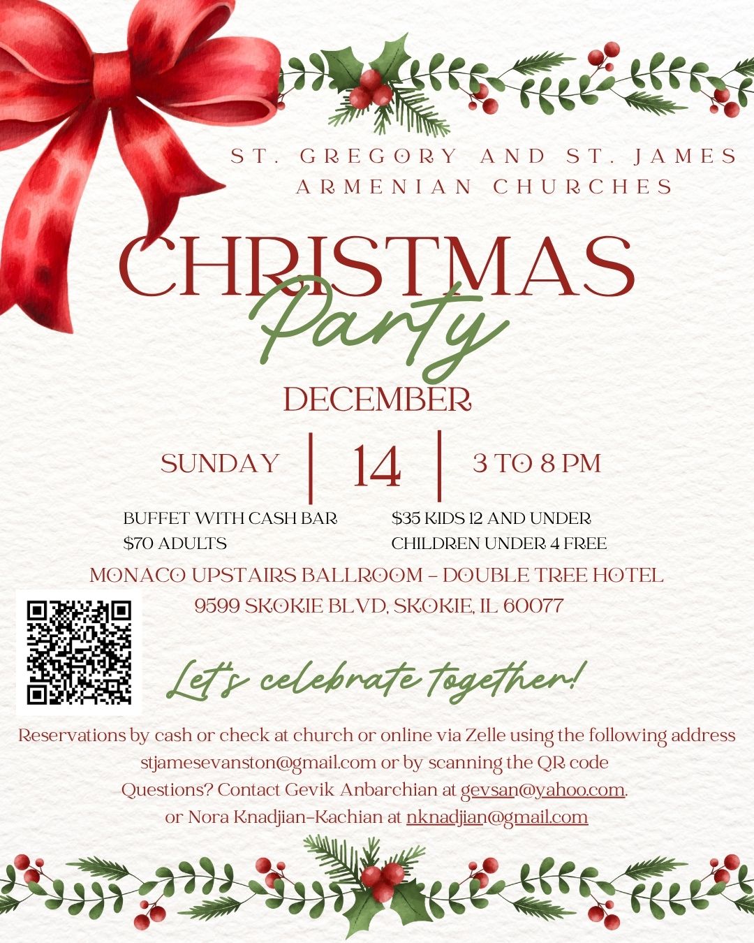 Please contact the current Women’s Guild co-chair ladies Mrs. Hayganus Paylan at (847) 533-4071 or Mrs. Christine Simon at (847) 301-0932 for more details.